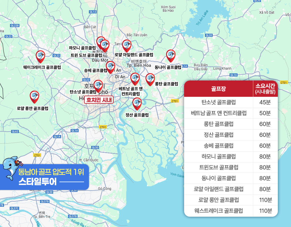 ▶ 호치민의 위성도시로 야심차게 조성중인 4200핵타르의 신도시 내에 자리하게 되어 도심지역내에 위치하는 지리적 요소가 큰 장점인 골프클럽 입니다.