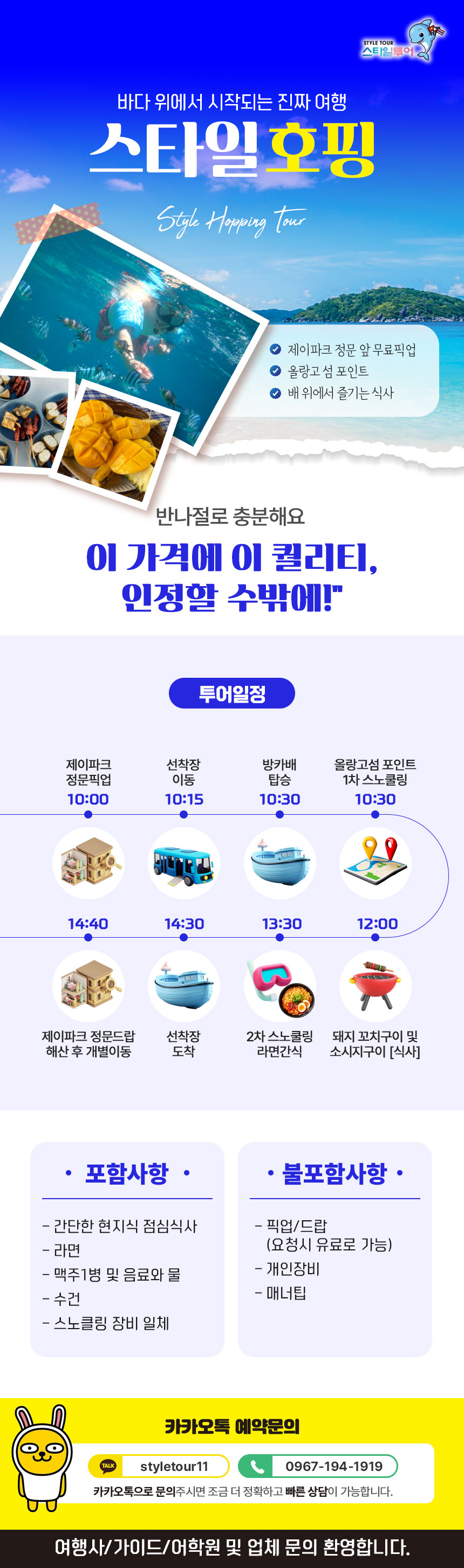 - 중식 포함이며 스노클링 2회 진행됩니다.