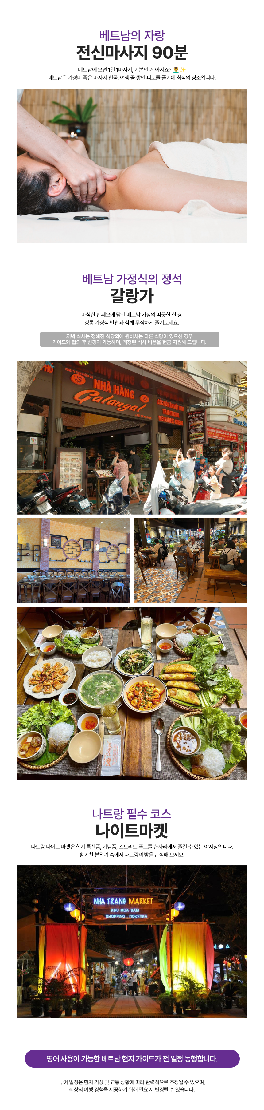 📌 오전 11시 호텔픽업 → 포나가르 사원 → 롱선사 → 점심:퍼어이 쌀국수 → 전신마사지 90분 → 머드온천 → 저녁:갈랑가 → 나이트마켓 → 나트랑야시장 → 호텔드랍