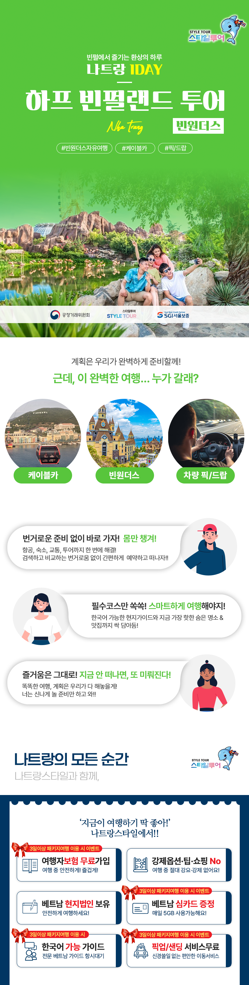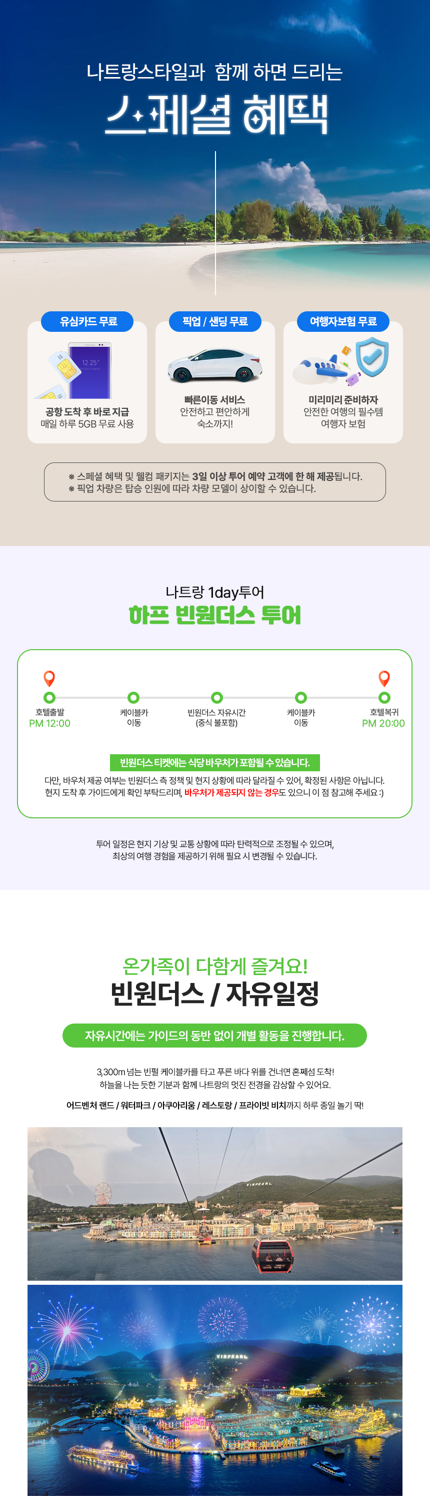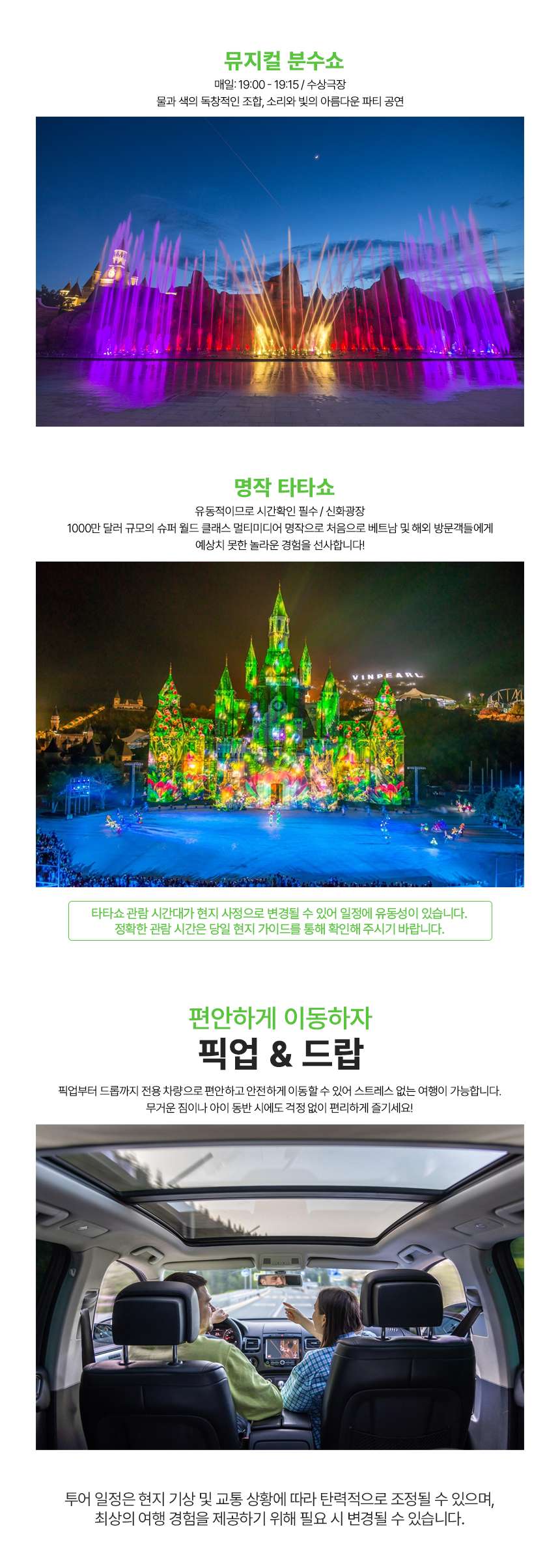 📌 오후 12시 호텔픽업 → 빈원더스 케이블카 이동 → 빈원더스 자유시간+점심불포함(자유식) → 빈원더스 케이블카 이동 → 호텔드랍