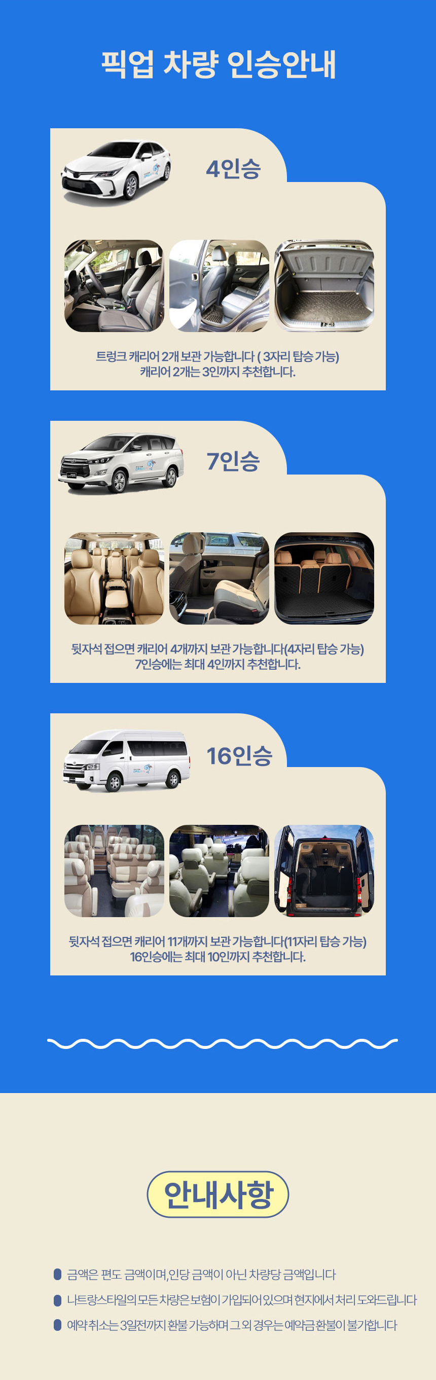 📢 1인당 금액이 아닌 [차량 1대의 이용금액] 입니다.