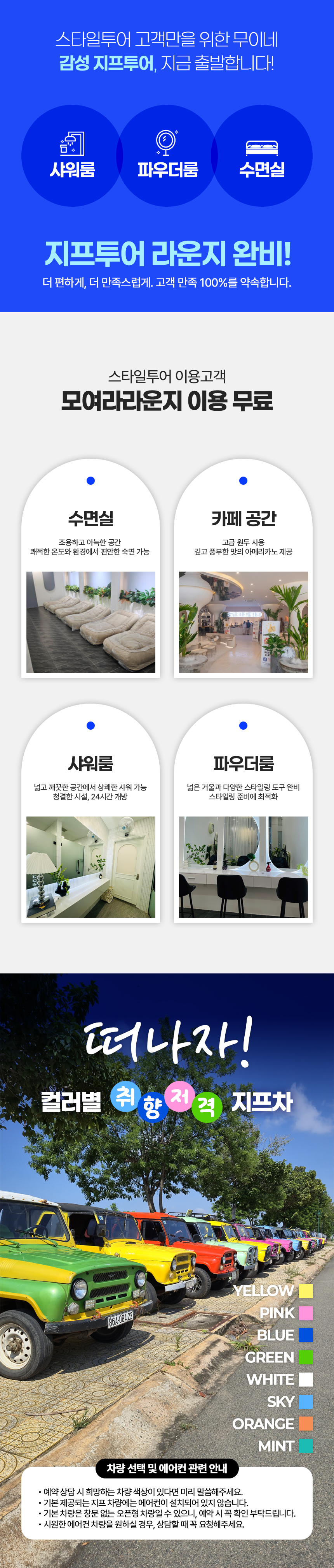 기존의 단순 투어를 넘어, 차량 이동부터 라운지 휴식까지 모든 과정을 체계적으로 구성한 프리미엄 무이네 지프투어, 지금 바로 예약해보세요!