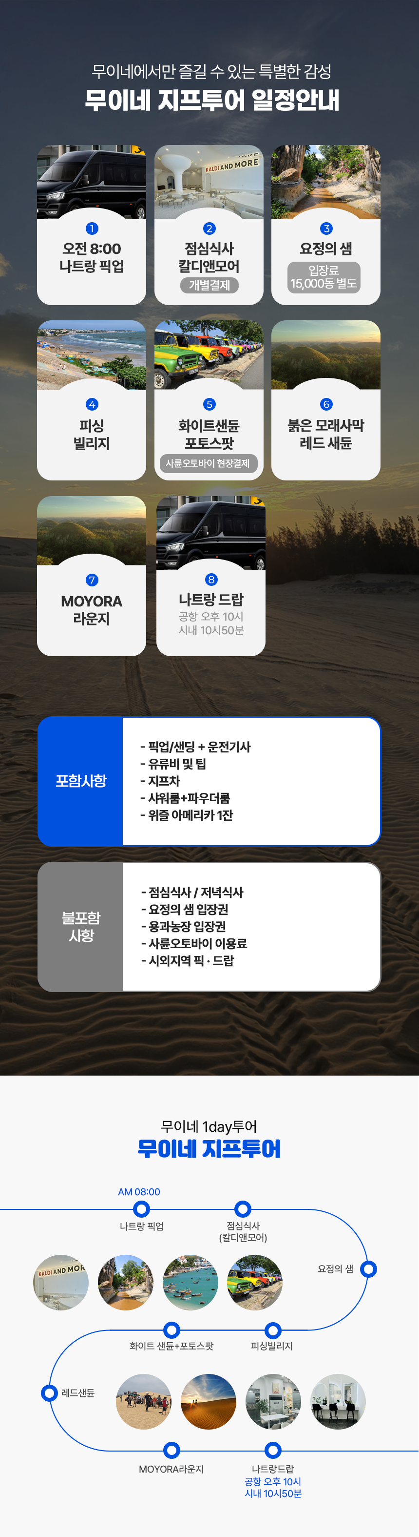 화이트샌듄, 레드샌듄, 요정의 샘, 어촌마을, 전용 차량 픽업까지!