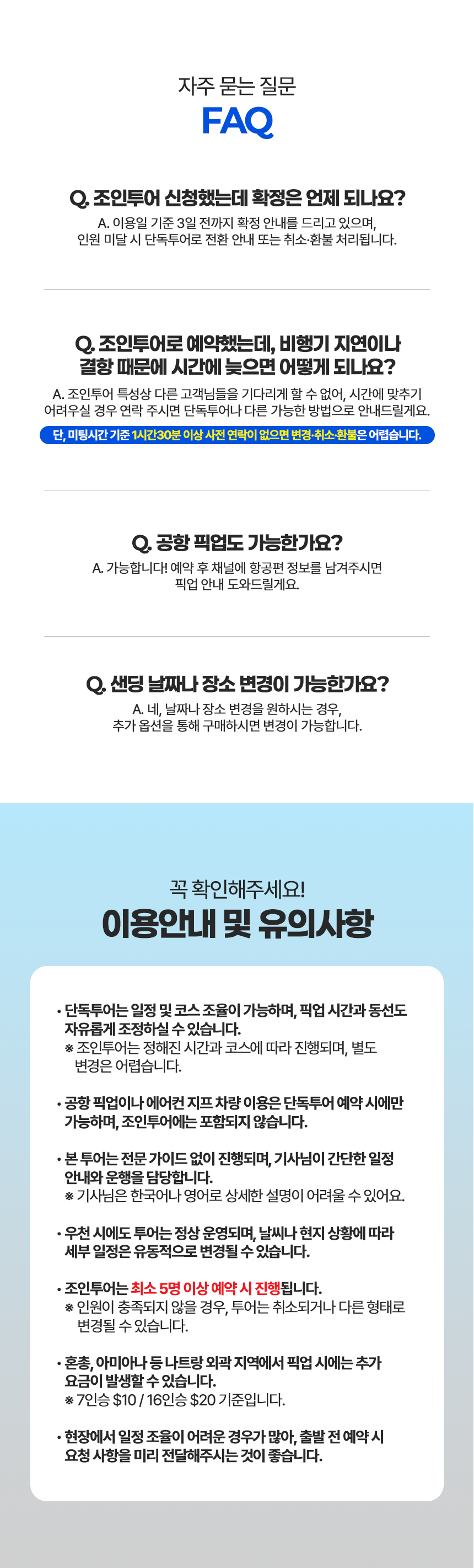 • 투어 일정 및 순서는 현지 상황(기상, 교통 등)에 따라 변경될 수 있습니다.