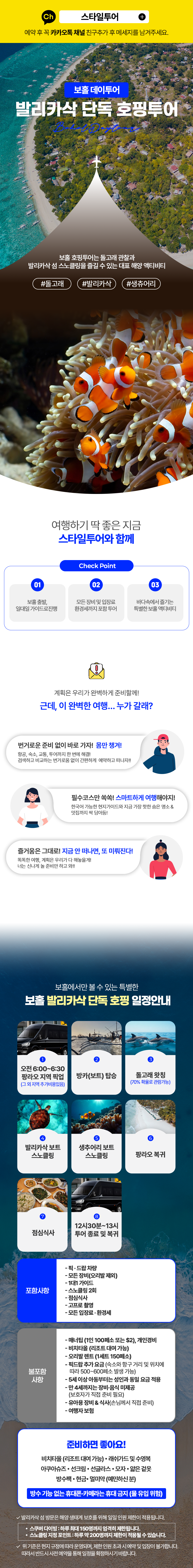 🎈맑고 깨끗한 에메랄드 빛 발리카삭에서 스노클링 다양한 해양 생물들을 구경하는 투어입니다.