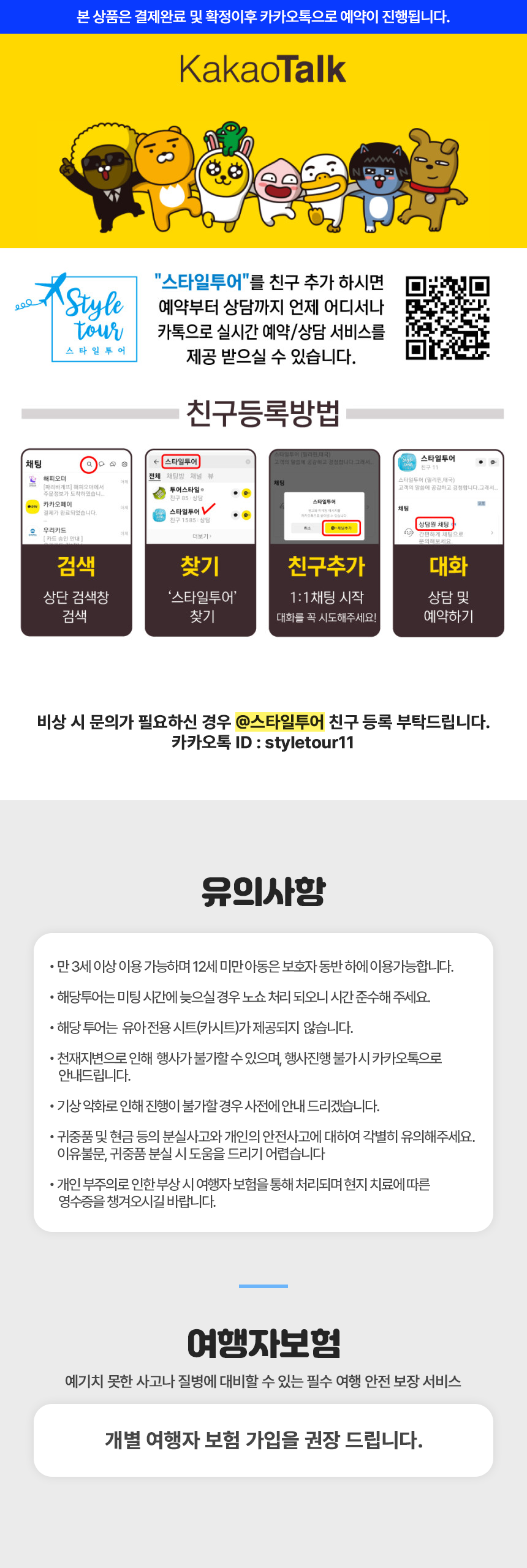 -해당 투어는 조인 그룹 투어로 차량에 캐리어 보관이 어려우며 유아 전용 시트(카시트)역시 제공되지 않습니다.