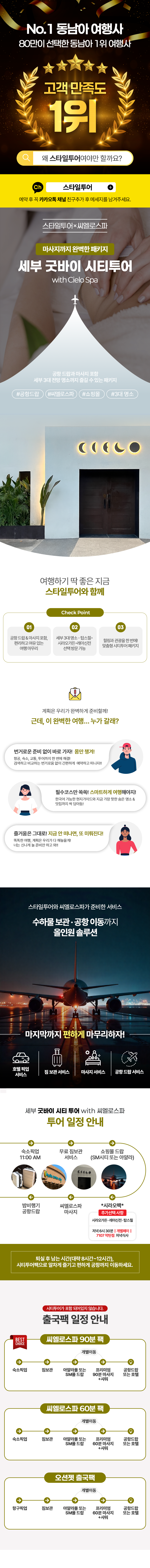 세부 체크아웃 후 공항 전까지, 시티투어와 씨엘로스파로 마지막 날을 알차게 채우는 힐링 패키지입니다.